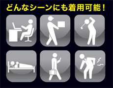 また、下着など目立たないところでおしゃれを楽しむミドル、シニアの男性も増えていることから、 これまでの腰痛ベルトにはなかった新しいデザインのボーダー(横縞)やチェック、ドット柄、無地カラーなどを取り入れました。 サラリとした肌触りの生地を使っているため、素肌に直接着用でき、下着と同様のおしゃれアイテムとして愛用いただけます。